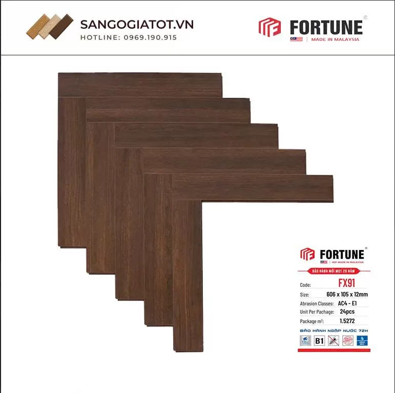 - Tên sản phẩm: Sàn gỗ Fortune 12mm xương cá – FX91