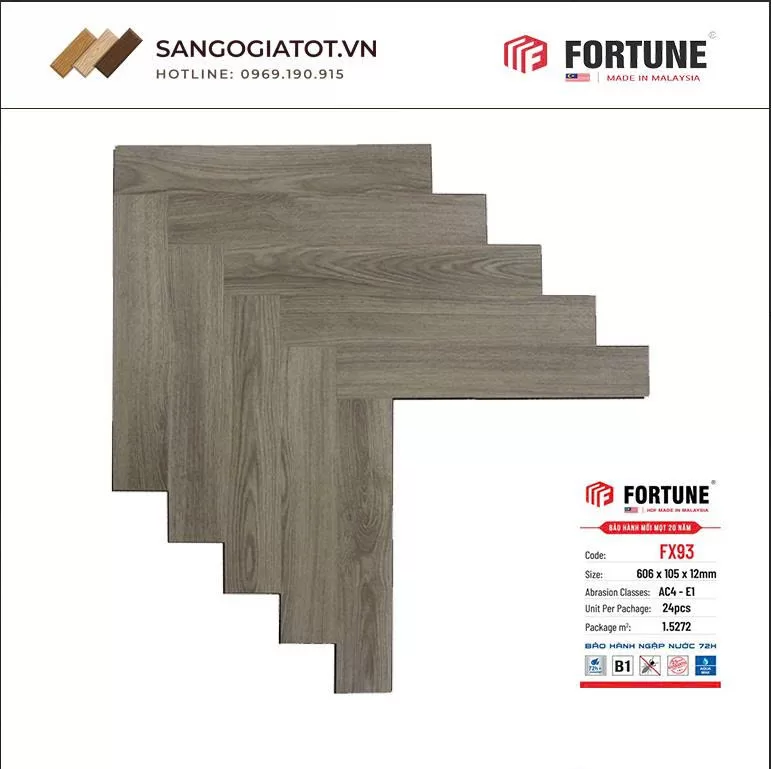 1.1 Thông Tin Sản Phẩm Sàn Gỗ Fortune 12mm Xương Cá – FX93