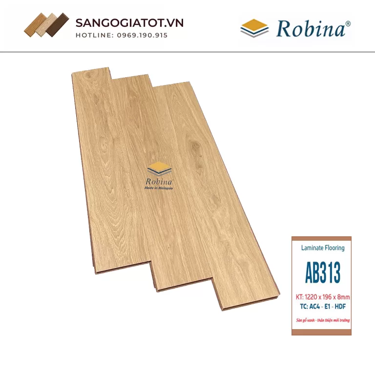 1.2 Thông Số Kỹ Thuật Sàn Gỗ Robina 8mm – AB313