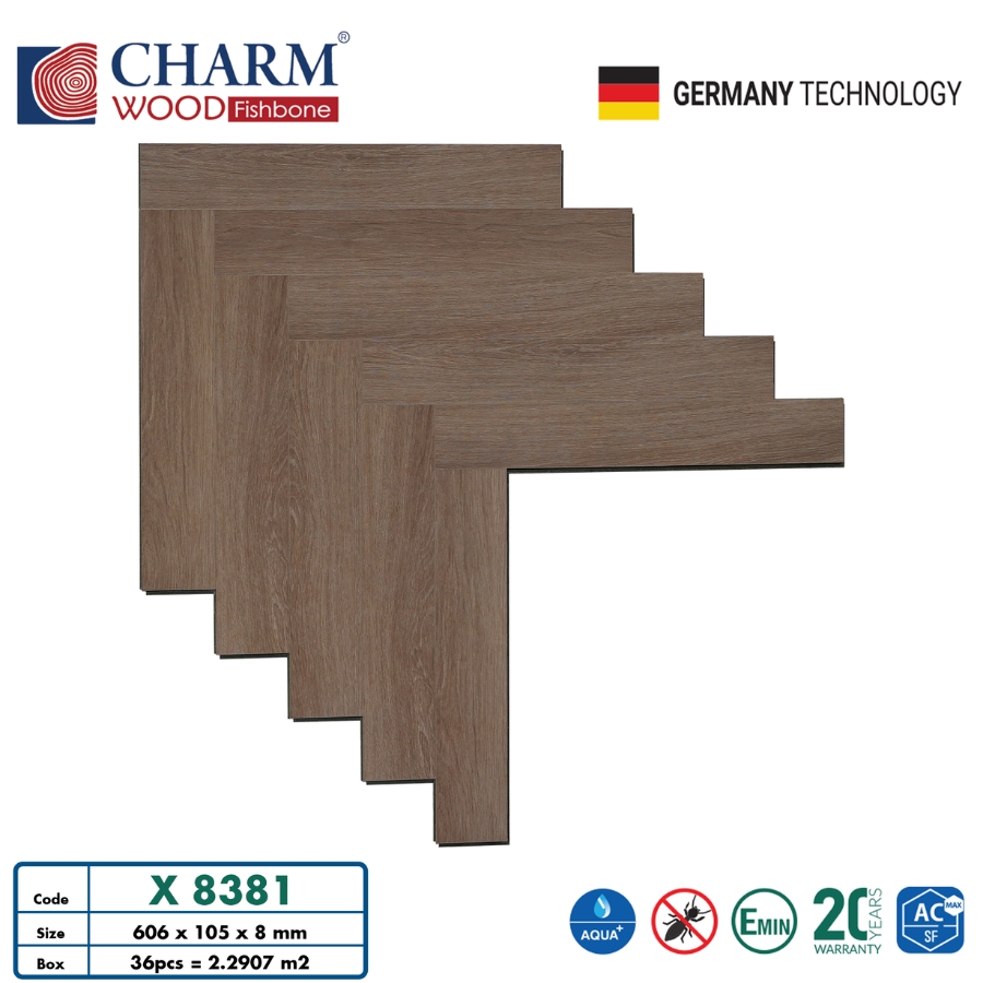 Sàn gỗ xương cá Charmwood 8mm X8381 nổi bật mang đậm phong cách châu Âu hiện đại